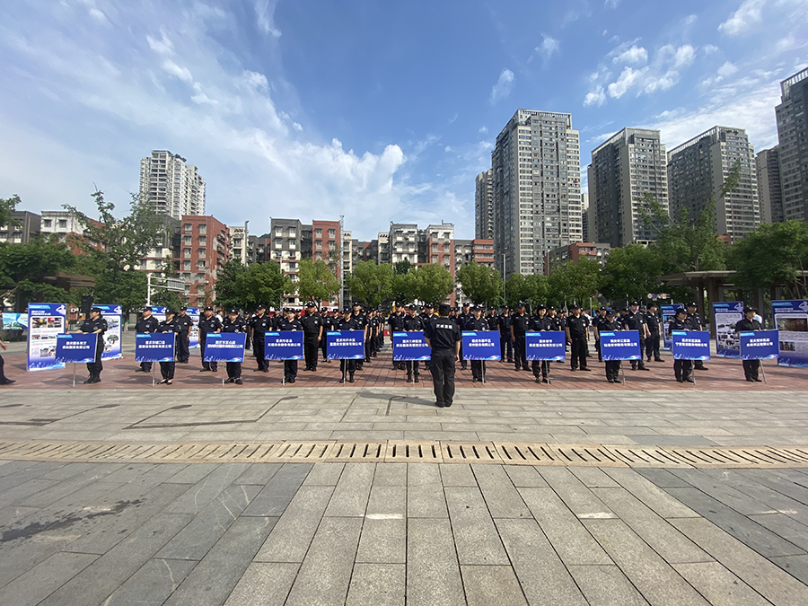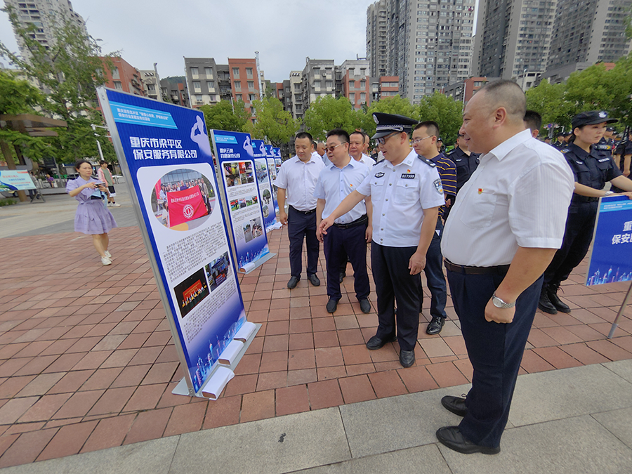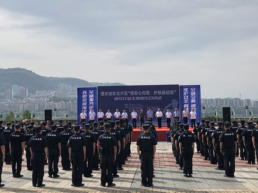 保安心向党 护航新征程“每周7天、每天24小时”。2023年7月24日,是第5个全国保安行业主题宣传日,按照公安部统一部署,由重庆市公安局主办,重庆市保安协会、万州三峡蓝盾保安公司承办的渝东北片区“保安心向党、护航新征程”保安行业主题宣传日活动在万州如期举行,万州区公安局、国资委领导出席并讲话,梁平、开州等渝东北片区11家保安从业单位相关负责人以及保安队员代表共计80余人参加本次活动。 活动现场,保安员代表身着保安执勤服,英姿飒爽整齐地列队在广场中央。 广场两侧摆放着各单位宣传展板、主席台大屏幕上播放着保安员安保技能汇演视频,向市民介绍了重庆保安行业的发展成就,以及广大保安员不惧艰险、昼夜奋战在防汛抗洪和抢险救灾一线的先进感人事迹。展示着渝东北片区保安从业单位在巡逻防控、抗洪抢险、重大活动安保、同违法犯罪作斗争、服务群众等方面做出的重要贡献,展现了新时代保安队伍的良好形象及广大保安队员在平凡岗位默默奉献的职业精神。 活动现场,万州区公安局治安支队政委幸大林表示,保安行业作为公安机关维护社会治安信任的重要群防力量,在参与社会治安防控体系建设、服务大型活动安保、内部保卫、巡逻守护、抢险救灾及社会面巡逻防控等方面作出了重要贡献,促进了社会治安形势持续稳定,人民群众安全感、幸福感、获得感明显提升。希望保安从业单位、广大保安从业人员,一心向党,一心为民,保持政治担当,不负历史使命,戒骄戒躁,再接再厉,继续发扬优良传统,保持战斗作风,忠于职守,尽责履职,进一步提高综合素质,提升职业技能,加强履职能力建设,为保障一方社会治安持续稳定,保障千家万户平安幸福,为护航建设现代化国家新征程作出新贡献。 活动现场,梁平保安公司总经理岳万军代表保安从业单位发言。他讲到:在今后的工作中,作为保安从业单位,将继续在习近平新时代中国特色社会主义思想指引下,在公安机关行业监管下,在市保安协会的指导下,强化保安队员思想认识,牢记服务宗旨,忠诚履职,恪尽职守,勇毅前行,守护广大市民群众平安。积极参与公安机关夏季治安打击整治行动,全身心投入维护社会稳定、巡逻防控、抗洪抢险、自然灾害防范和救助、确保人民群众生命财产安全,以实际行动和更高标准全面落实党的二十大精神,共同助推保安行业高质量发展。